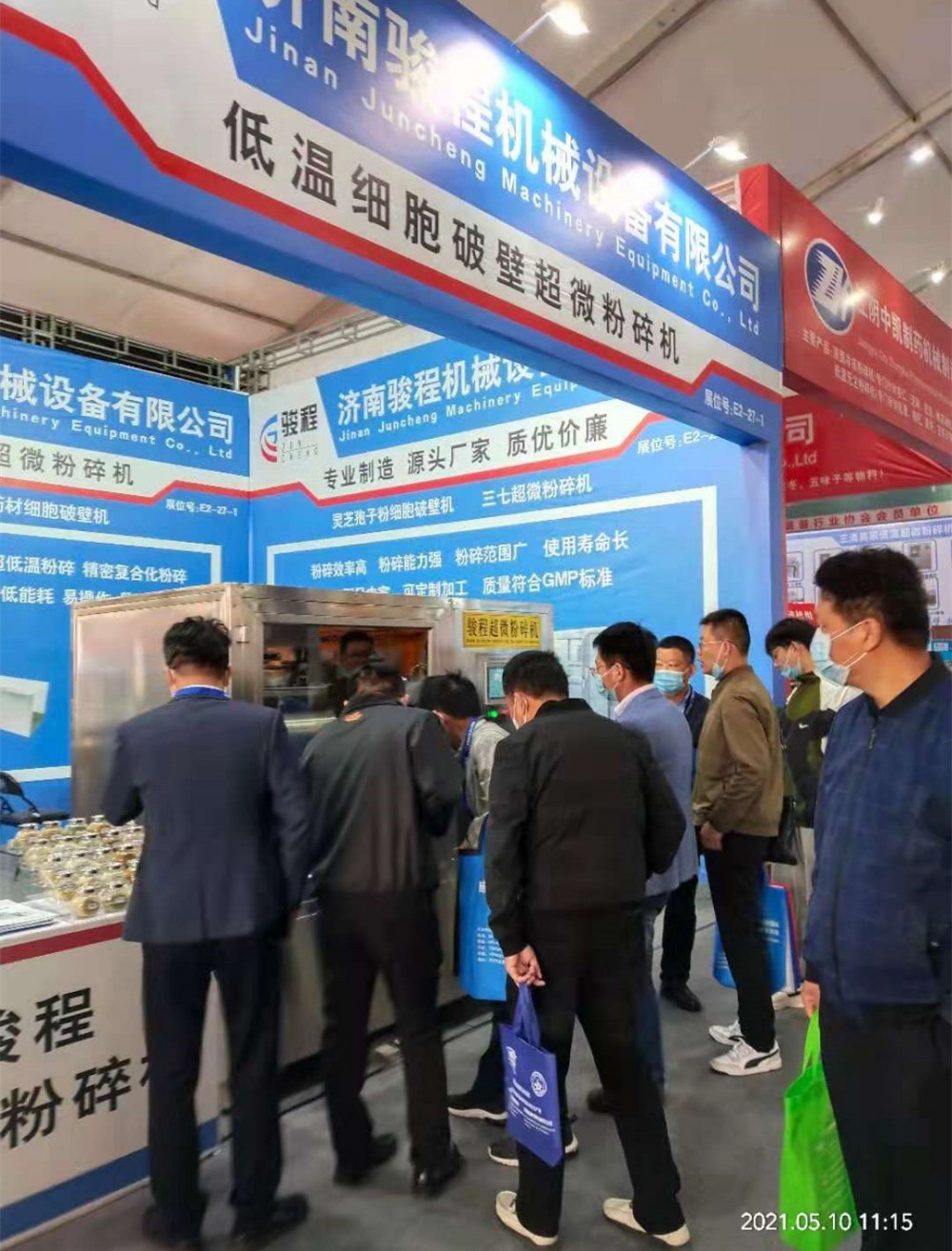 第60屆(2021年春季)全國制藥機械暨中國國際制藥機械博覽會于2021年5月10日至12日在青島世界博覽城舉行。本次展會,我們公司經過精心準備,向大家展示了我們的低溫細胞破壁超微粉碎機設備。特別是JCWF-50型超微粉碎機設備,憑借精湛的技術做工、自動化操作系統、高效率的低溫破壁粉碎技術,成為同行業中的一大亮點。從而吸引了眾多客商的駐足觀看與咨詢洽談。